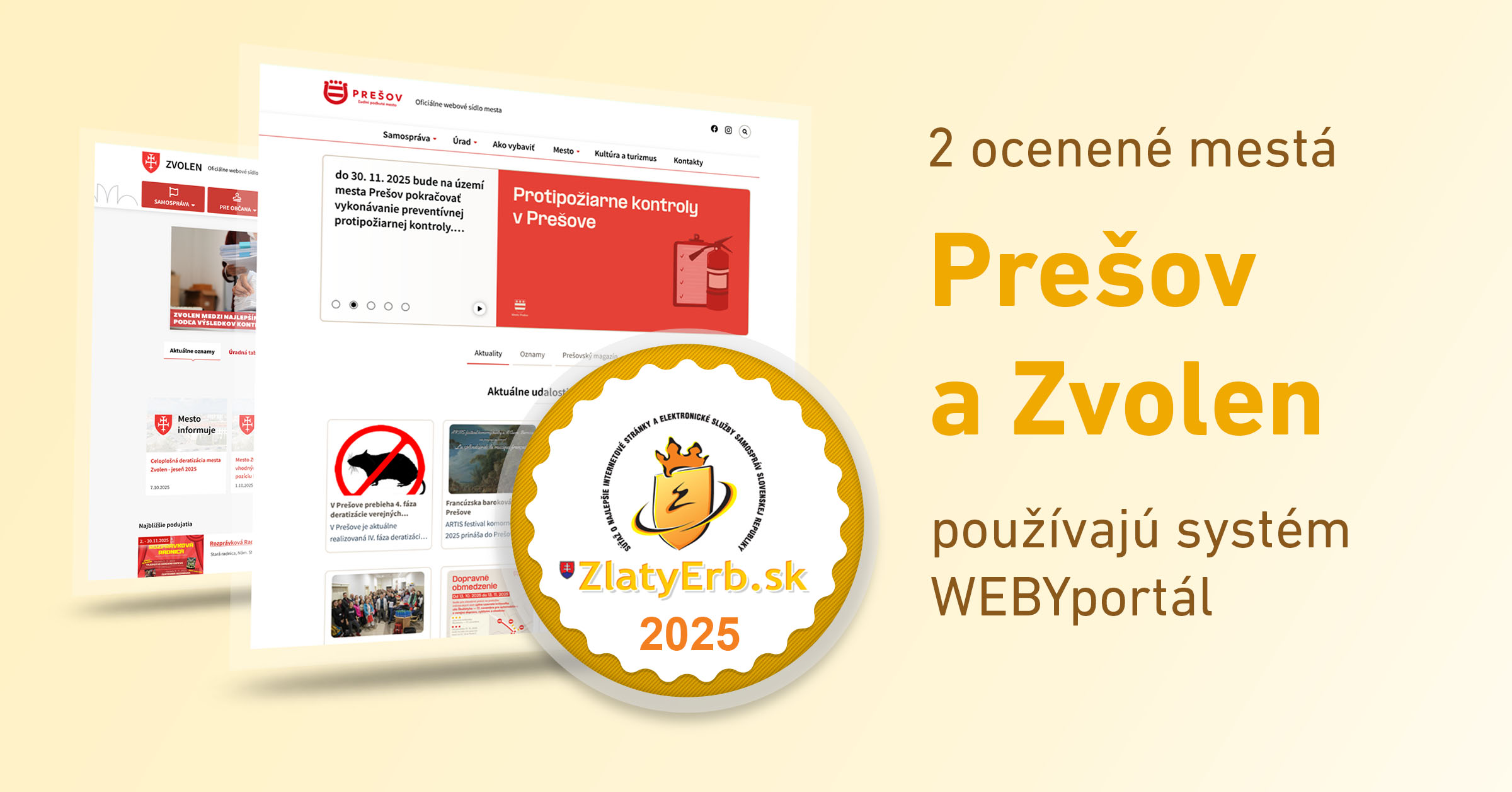 Máme radosť, že aj v roku 2025 uspeli v súťaži ZlatyErb.sk webové sídla postavené na redakčnom systéme WEBYportál.